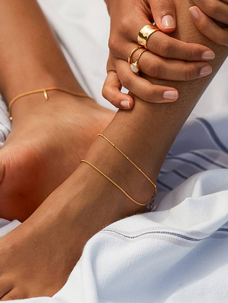 18K Gold Non-Tarnish Layered Chain Anklets